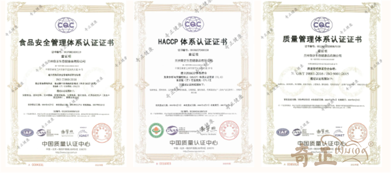 2024年2月7日,蘭州奇正生態(tài)健康品有限公司取得三體系的認證證書,是對健康品公司優(yōu)化資源配置、完善規(guī)章制度、防范和化解經營風險,以及強化企業(yè)內部管理、穩(wěn)定經營運作等工作提供了助力,有效提高了企業(yè)核心競爭力和生產效益,進一步推動企業(yè)管理水平邁上新臺階。