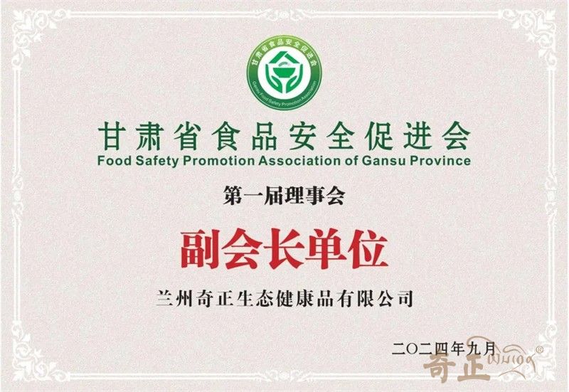 2024年9月6日,甘肅省食品安全促進會暨第一次會員大會在蘭州召開,奇正健康入選為“第一屆理事副會長單位”,為落實食品安全主體責任,促進食品產業(yè)高質量發(fā)展貢獻奇正力量。