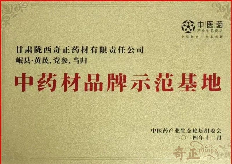 2024年12月15日,第二屆中醫(yī)藥產業(yè)生態(tài)大會(TMEC)在雄安新區(qū)盛大開幕。會議中發(fā)布了“2024年中藥材品牌示范基地”評選結果,100個中藥材品牌示范基地最終入選,甘肅隴西奇正藥材有限責任公司榮耀上榜。