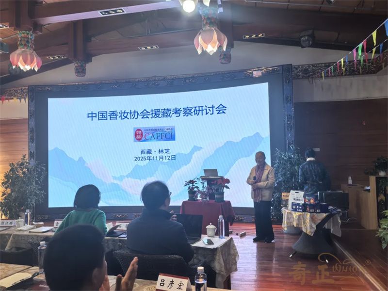 考察期間,中國香精香料化妝品工業(yè)協(xié)會副秘書長兼辦公室主任李英,系統(tǒng)介紹了協(xié)會在政策解讀、法規(guī)制定、技術創(chuàng)新、產(chǎn)業(yè)發(fā)展、國際合作交流及信息服務等方面的核心職能,清晰闡釋了協(xié)會作為“政府與企業(yè)間橋梁紐帶”的作用,為雙方未來更緊密合作奠定堅實基礎。奇正集團林芝雪域公司綜合事務部副經(jīng)理羅珍向專家團簡要匯報了集團發(fā)展歷程、企業(yè)理念,以及各業(yè)務板塊在所屬領域取得的突出成就。針對藏藥化妝品未來具體發(fā)展方向,股份公司戰(zhàn)略規(guī)劃部總監(jiān)兼董事長助理石翠分享了以“喜瑪雅拉”為核心的特色化妝品品牌藍圖,清晰勾勒出“藏地文化+現(xiàn)代美學”融合的產(chǎn)品開發(fā)路徑;種植負責人牟思維博士從科學維度,詳細匯報了公司在西藏特色植物原料研究進展、成分功效及可持續(xù)利用方面的探索實踐,充分展現(xiàn)了奇正在原料端的扎實基礎與科研硬實力;研發(fā)工程師俞金蓉分享了藏藥養(yǎng)生護膚的“三因理論”與阿育吠陀理論,為產(chǎn)品研發(fā)提供了傳統(tǒng)醫(yī)學支撐。